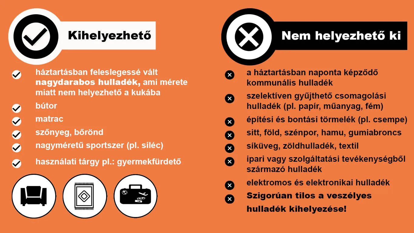 Lomtalanítás alkalmával kizárólag a háztartásban feleslegessé vált nagydarabos hulladék (pl. elhasználódott bútorok, ágybetétek, szőnyegek) helyezhető ki a ház elé. A lomokat a lakóház előtti, hulladékgyűjtő járművekkel jól megközelíthető közterületre kell kihelyezni úgy, hogy a gyalogos és autós forgalmat ne akadályozza. Lomot az úttestre, bicikliútra, zöldterületre ne helyezzen senki. Lom kizárólag az adott címre vonatkozó, a hivatalos tájékoztatólevélben, valamint a lomkihelyezési táblázatban elérhető térképen megjelölt napon, 18 óra után helyezhető ki.