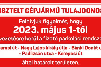 2023. május 1-től bevezetik a fizető parkolási rendszert a Fogarasi út – Nagy Lajos király útja – Bánki Donát utca – Padlizsán utca – Kerepesi út által határolt területen, munkanapokon 8–18 óra között...
